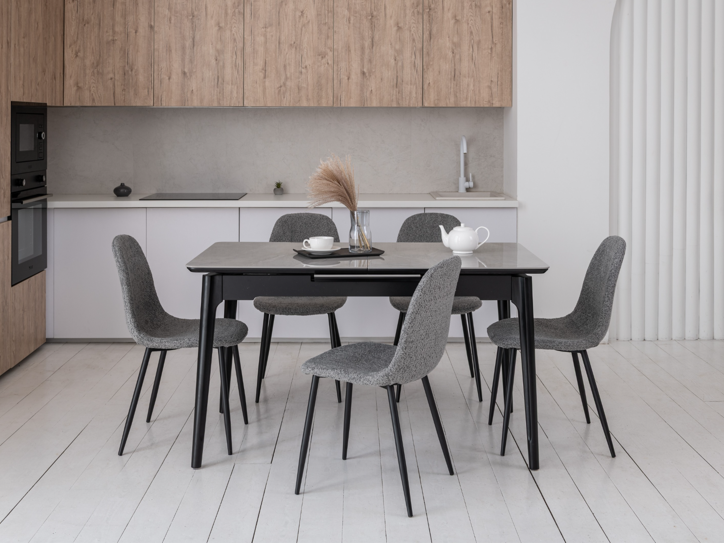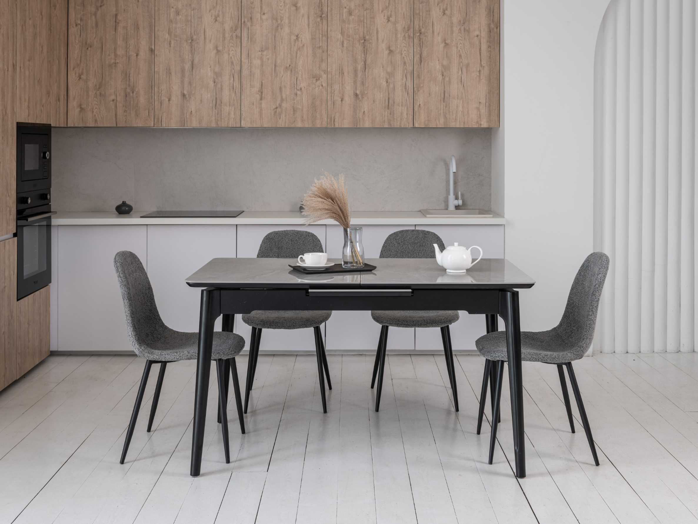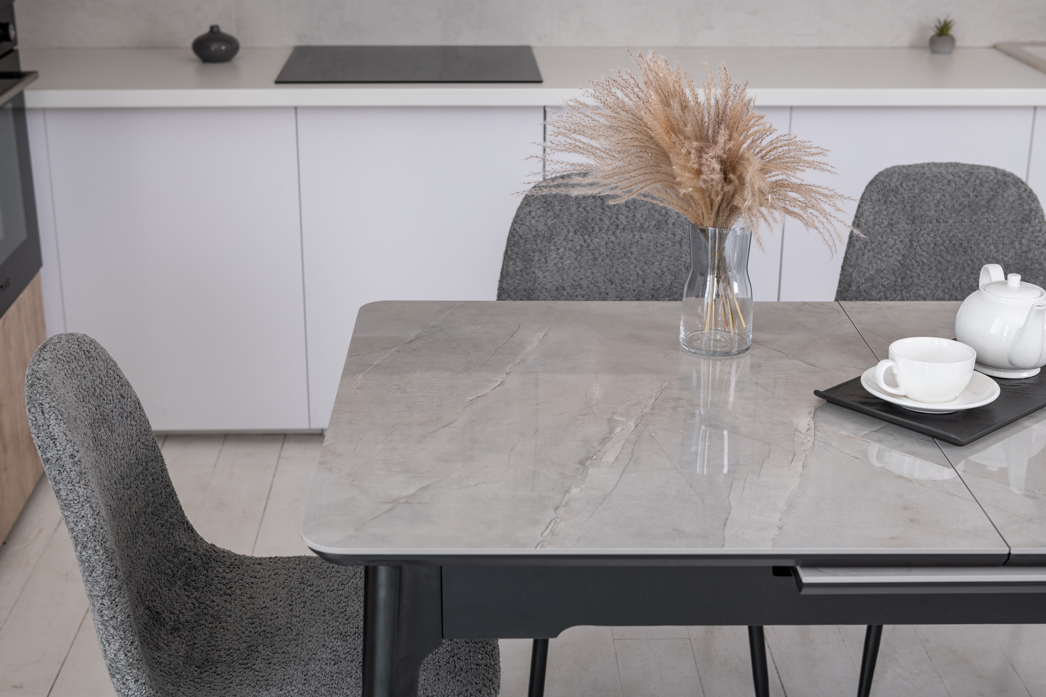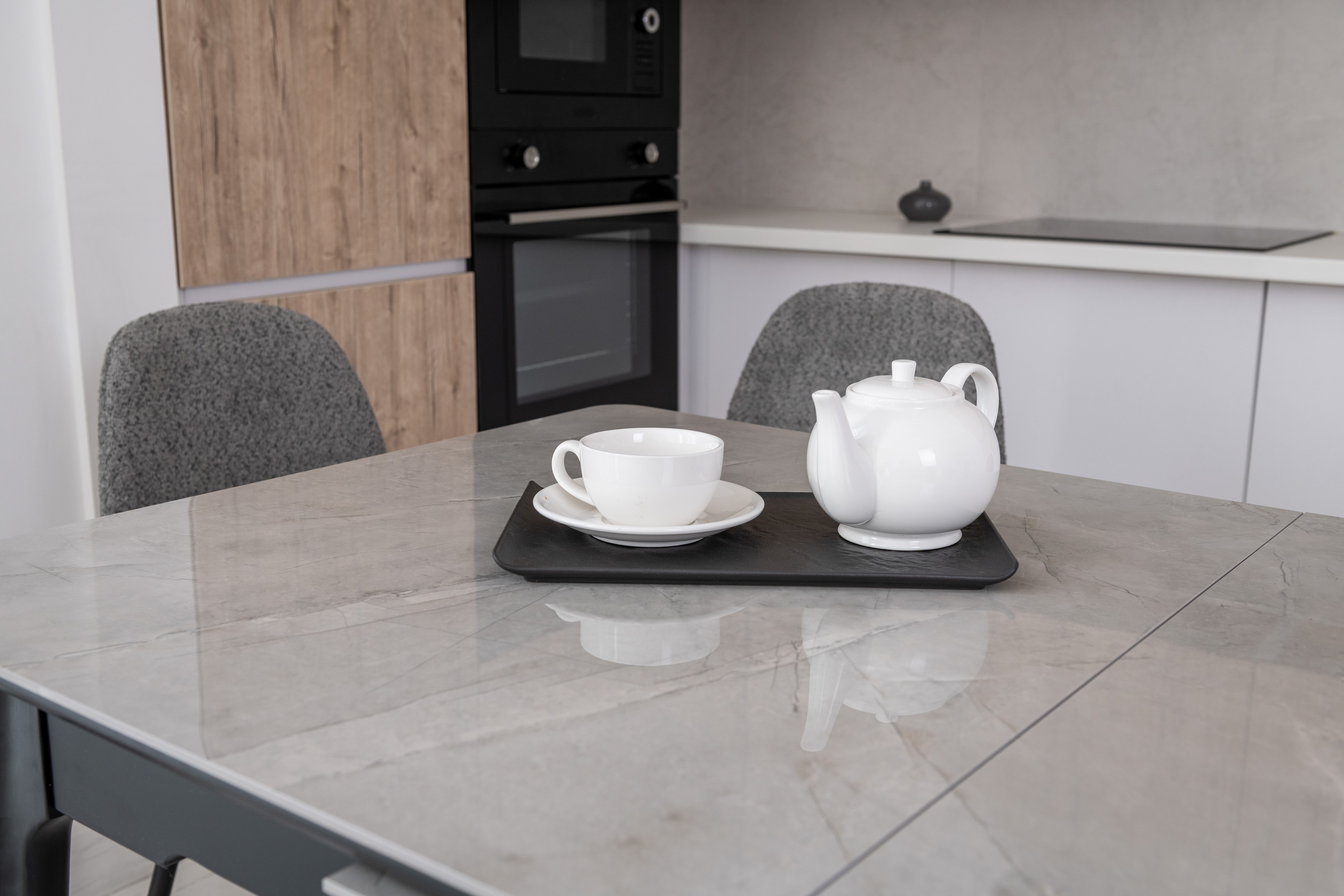 Керамический стол TM-89 калакатта мрамор (серая керамика) + черный