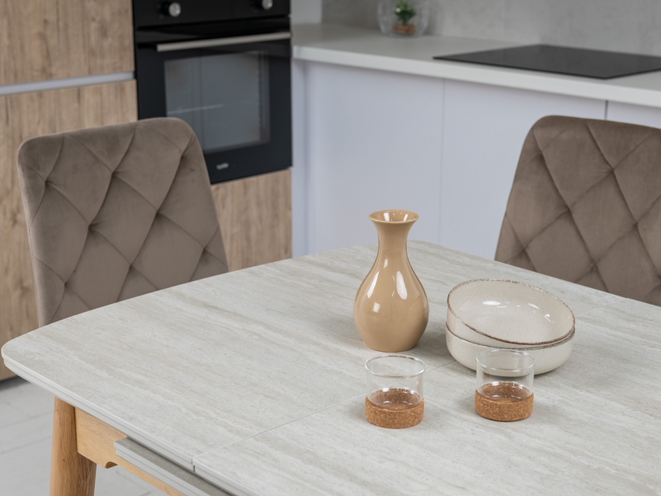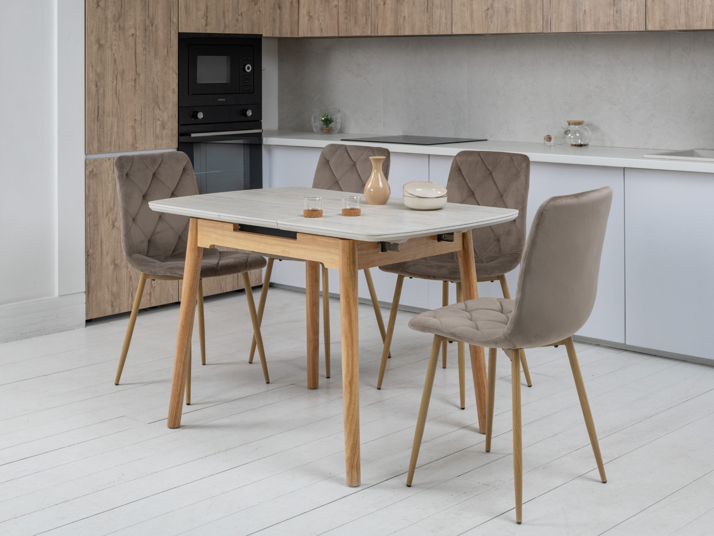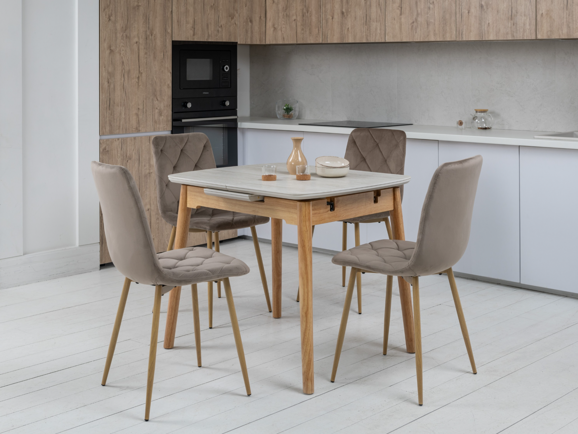 Керамический стол TM-87-1 травертин матовый + дуб